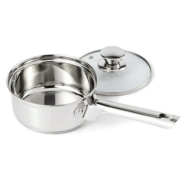 Tempered glass lids with stainless steel knob handles allow you to see food as you are cooking